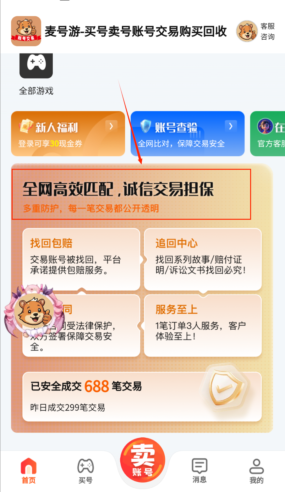麦号游专注于游戏账号交易服务,提供全网热门游戏账号资源,支持买卖双方安全交易,平台配备专业估价团队确保账号合理定价,电子协议与实名认证保障交易安全,账号找回永久包赔服务消除后顾之忧,智能分类与精准搜索功能帮助快速匹配需求,24小时在线客服解决交易问题。