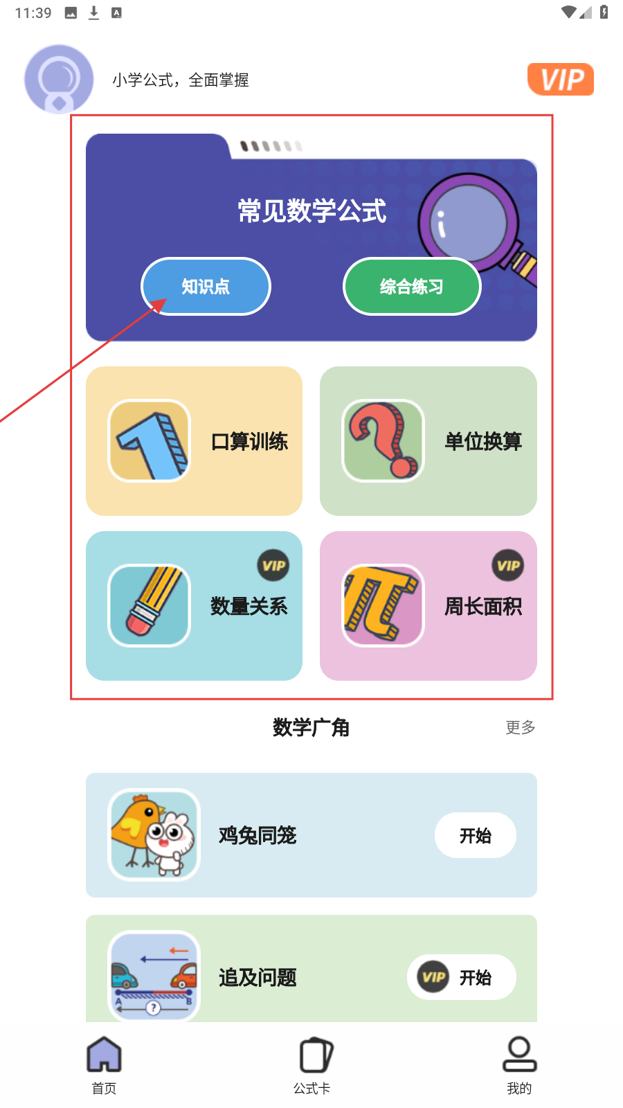 1、进入数学学习页,点【常见数学公式-知识点】,学习公式基础内容。