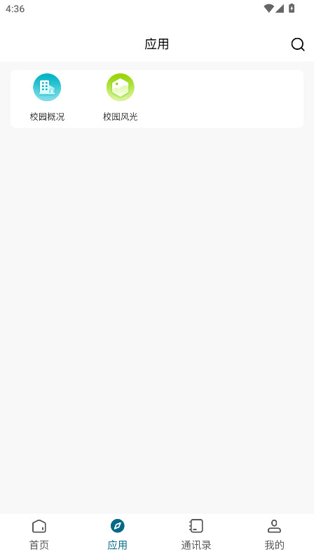 3、接着点击下方的“应用”,可以实时浏览校园概况,校园风光。