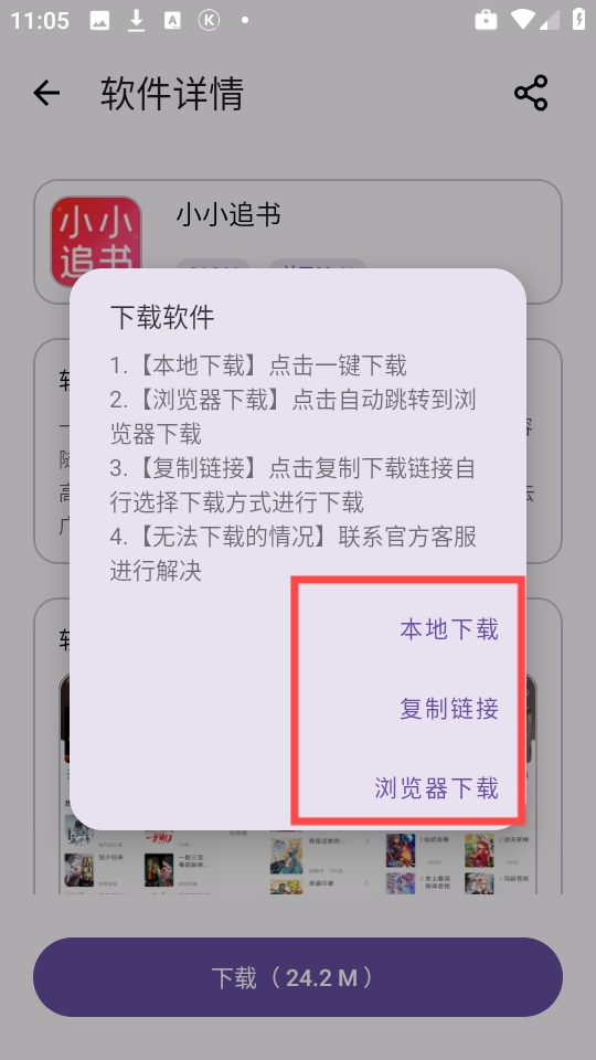 5、支持多种下载方式,本地下载,复制下载,以及直接跳转到浏览器下载。