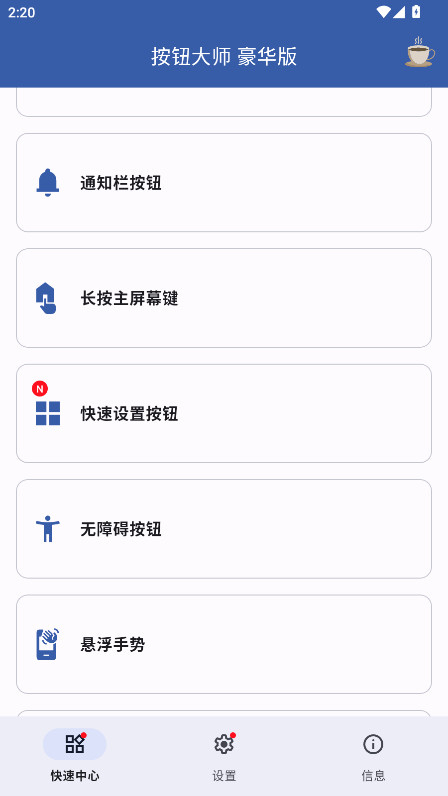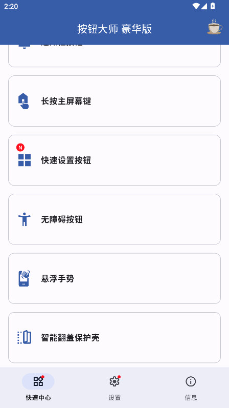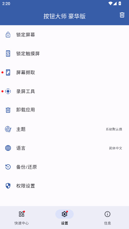 2.进入软件就可以看到小编给大家带来的是豪华版解锁版,这里主要有着最新的功能,比如智能悬浮控制、主屏幕控制、摇动设备、通知栏按钮等等。