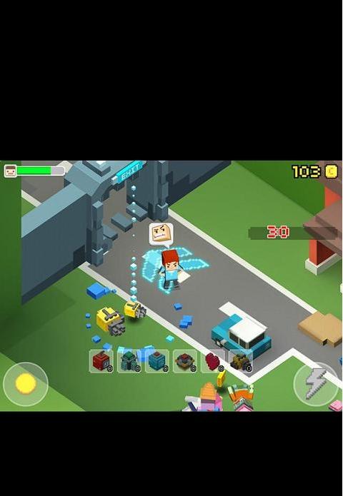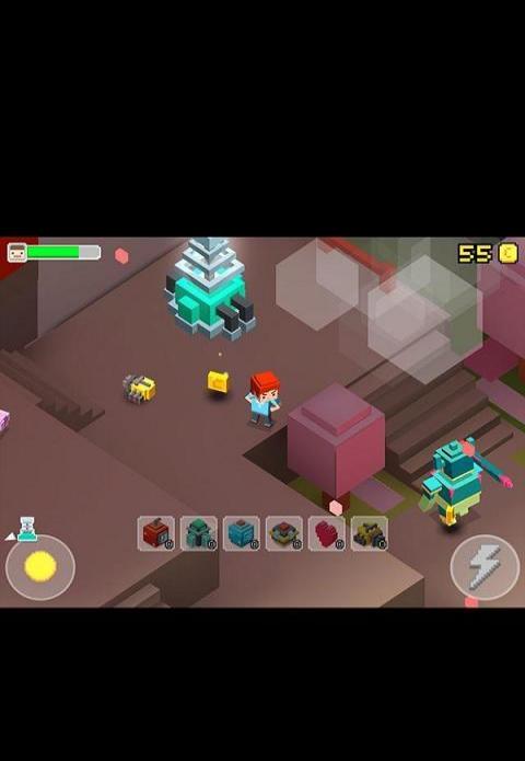 2.遇到道具拾取提示,靠近红、蓝等方块道具时钟、机器人,点击拾取,存入道具栏,用于反击。