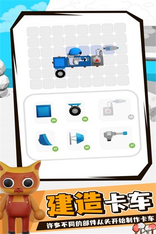 1、选择初始工具开始打造你的卡车,从底盘做起,挑选合适的零件组装,注意重量和强度的平衡,才能确保行驶稳定。