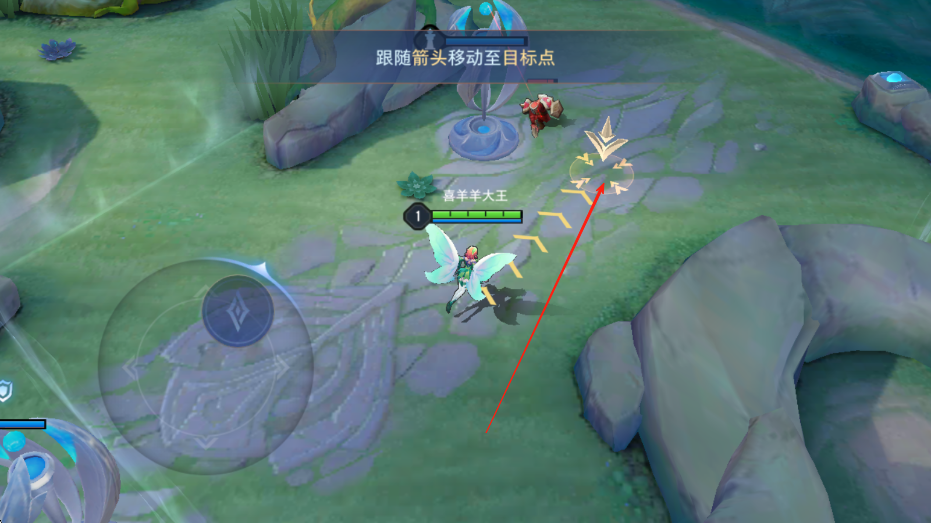 2、进入游戏后,跟随屏幕上的箭头指示,操控英雄移动至目标点,熟悉地图环境和移动操作,为后续战斗做好准备。