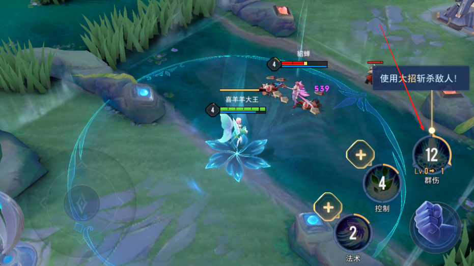 3、在战斗过程中,当与敌人相遇时,留意技能提示,看到使用大招斩杀敌人的提示后,点击大招释放按钮,对敌人造成大量伤害,助力战斗胜利。