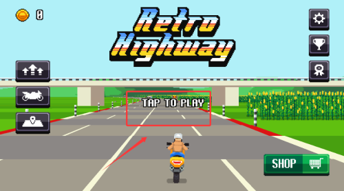 1、点击屏幕任意位置启动游戏,即刻开启复古摩托之旅。