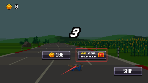 4、意外失误后通过观看广告获得继续机会,延续当前挑战。