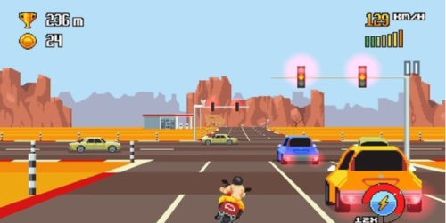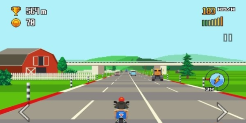 - 复古公路带来独特的像素风摩托竞速体验,采用经典街机风格呈现霓虹闪烁的夜色公路。驾驶造型复古的摩托车在空旷的道路上飞驰,感受引擎轰鸣与风驰电掣的速