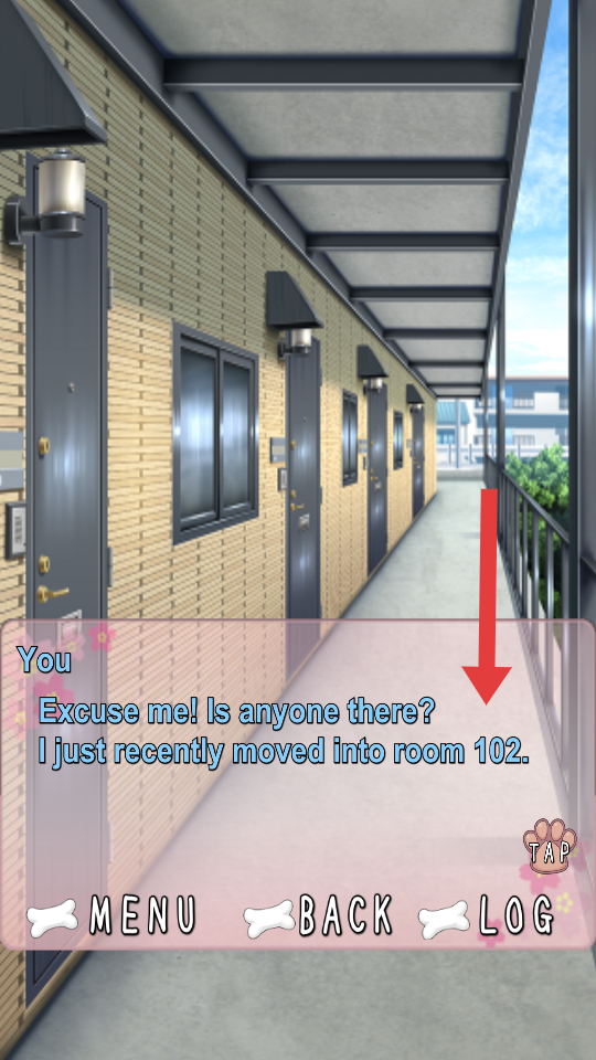 1、遇到在走廊的场景,点击TAP的按钮触发用户喊话,推进剧情的发展,继续进入室内进行探索。