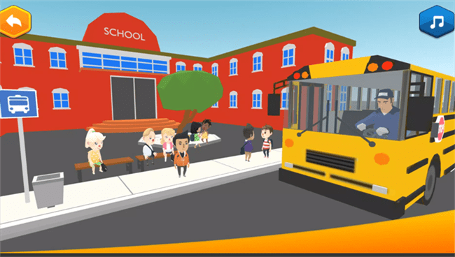 2、日常服务场景体验:设计清洁街道与驾驶校车的日常玩法,清洁街道需要收集散落的垃圾并按类别回收,驾驶校车则要规划安全的路线,将孩子平稳送达学校。