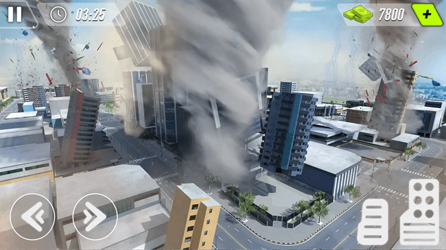 2、真实天气与音效:场景中会发生大雷暴,云层间雷暴效果逼真,搭配雷声隆隆的崩溃音效,在摧毁建筑物、汽车等物体时,音效与破坏画面同步,增强了游玩的真实感。