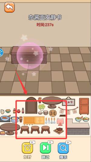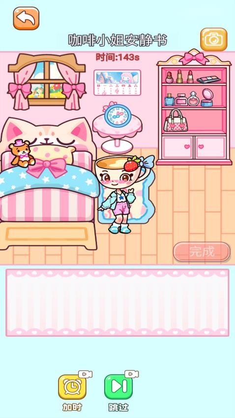 3、接任务后按要求来装饰,比如公主风就用粉色系。注意屏幕上方的倒计时,动作要快,完成就能过关拿奖励。