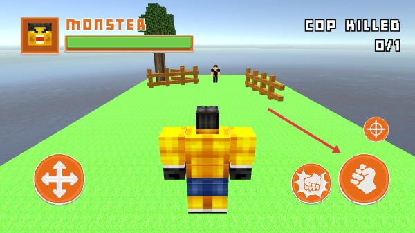 2、在场景中遇到COP时,按下右侧攻击键拳头图标展开战斗,打掉其血量,完成COP KILLED0/1目标。