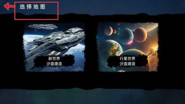 2、在模式选择,进入选择地图页,挑【新世界】或行星世界沙盒建造,加载对应场景,开始创作/战斗。