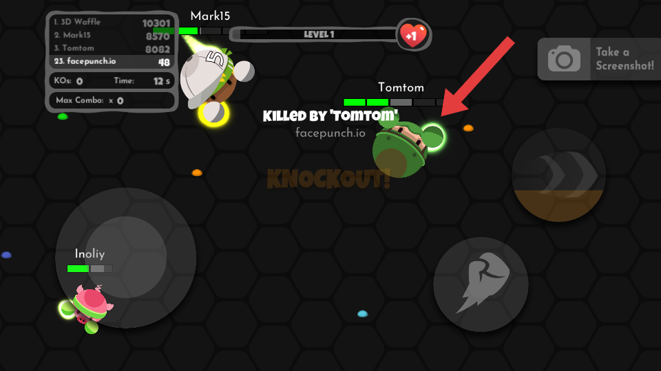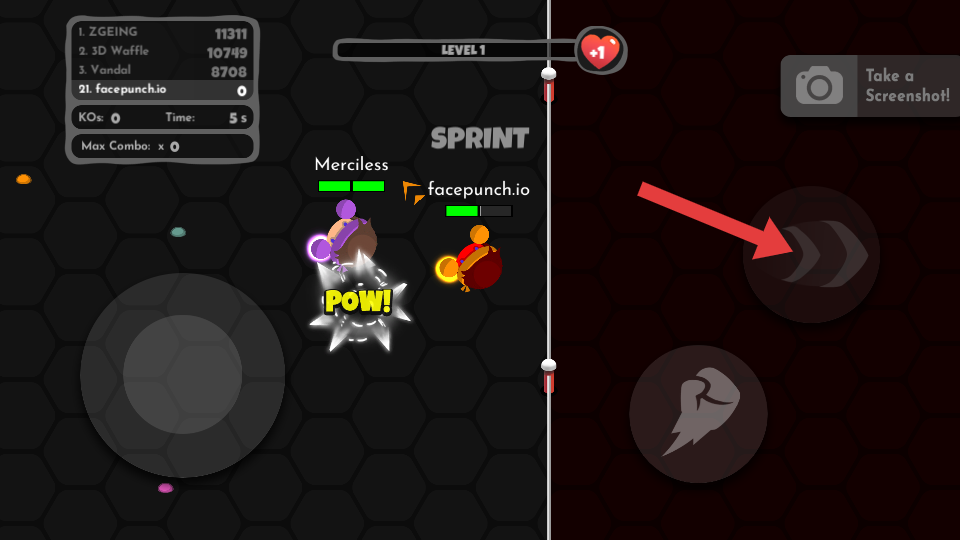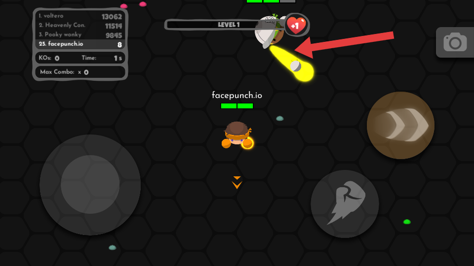 1、用左侧摇杆控制角色移动,找落单的玩家,点击右侧拳头按钮攻击,优先打血量少的,积累KO数。
