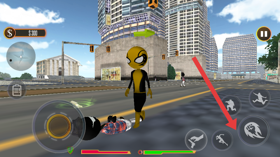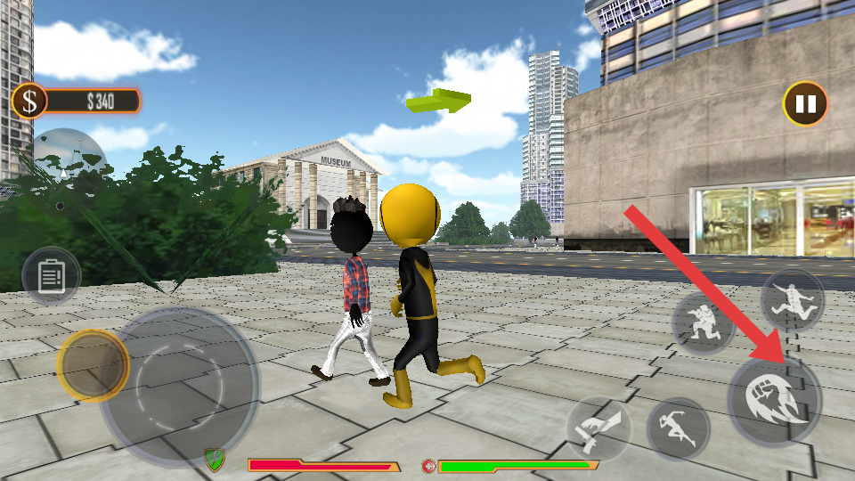 3、切换右侧拳头或者搏斗的按钮近战,保持移动躲避敌人的突然攻击,跟着前方敌人进行打击。