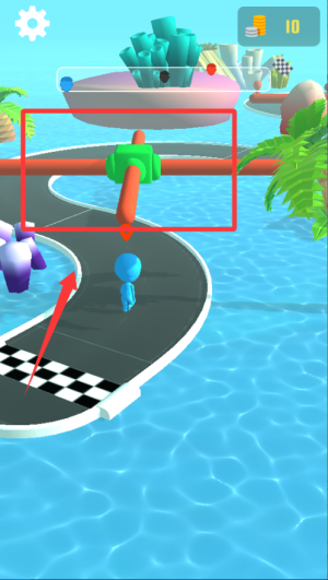 2、遇到大锤子和大转盘时,看准空隙快速通过,不要犹豫,利用短暂停顿拉开距离,避免连续失误影响速度。