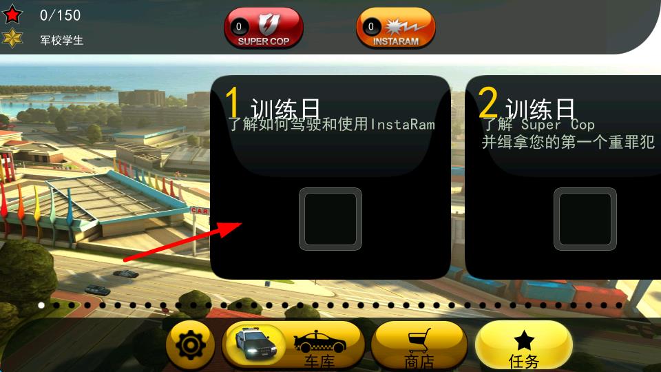 1、进入游戏后从车库选择合适的赛车,根据城市街道特点调整车辆性能,熟悉加速、刹车、漂移等操作按钮,进入追击准备界面。