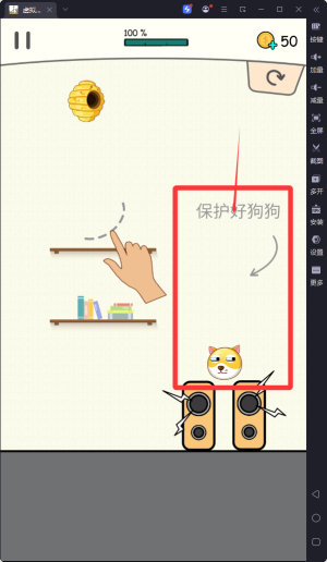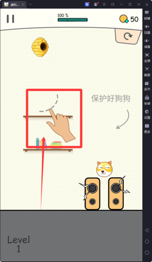 1、核心玩法是通过手指在屏幕上绘制防护线条,构建安全屏障保护狗狗免受蜜蜂等障碍物的侵扰与攻击。