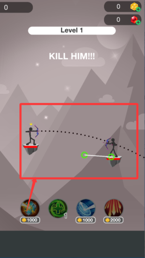 1、进入关卡先别急着射箭,先看清敌人站位和移动路线。控制火柴人慢慢前进,找好掩体避免被围攻。