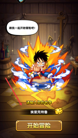3、随机选择自己喜欢的昵称,例如埃里克特鲁或自定义,点击开始冒险开启游戏旅程。
