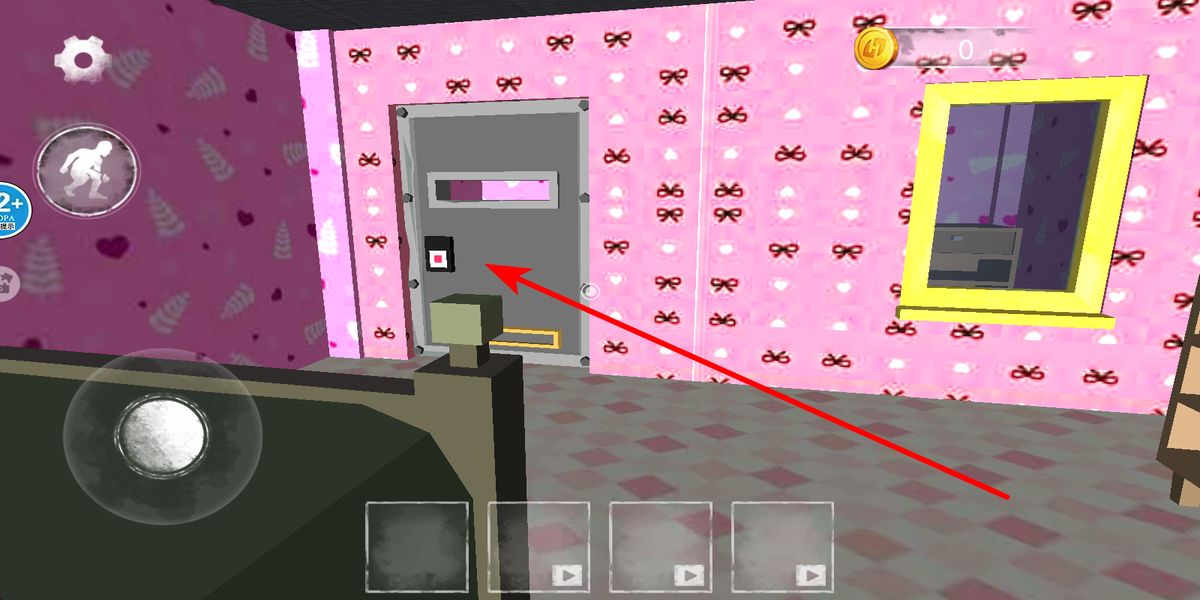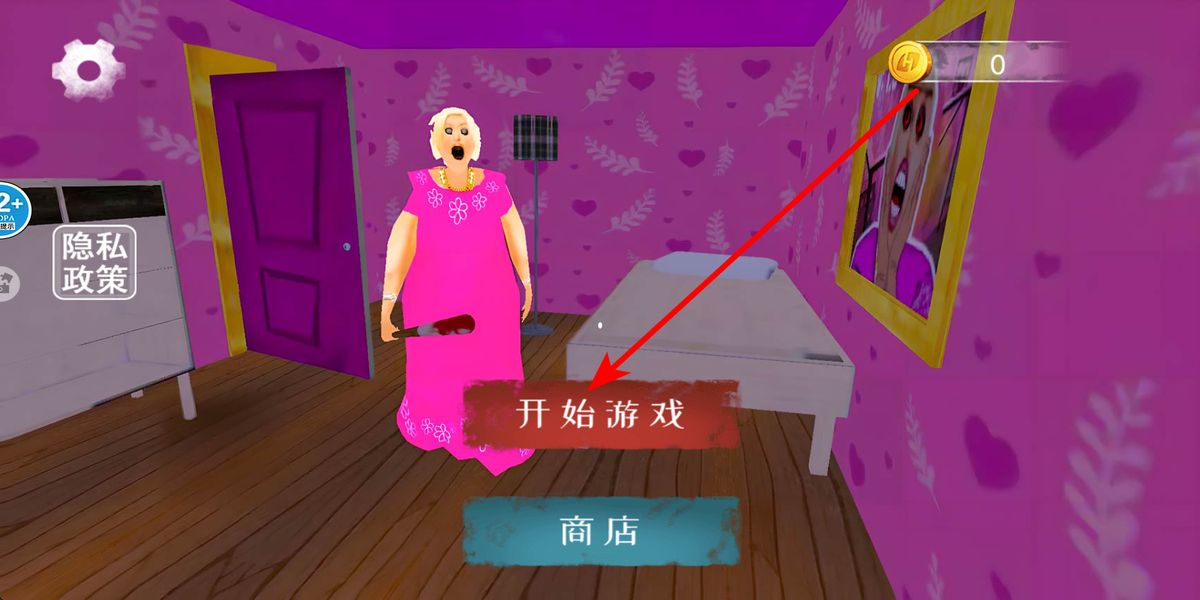 1、进入游戏,点击开始游戏,在粉紫色初始房间停留,快速扫视家具、物品分布,记住关键位置,为后续躲避与探索筑牢基础。