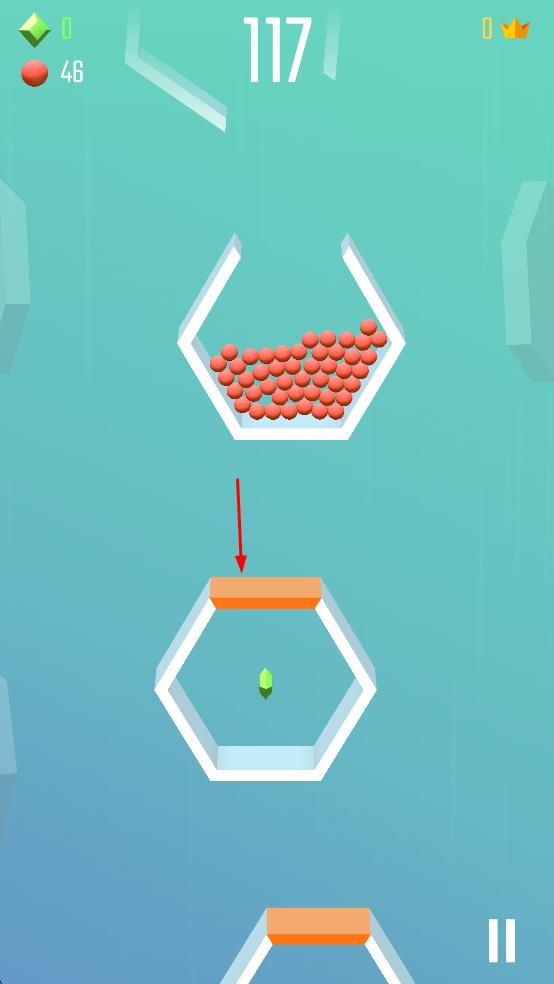 2、游戏中途,随着关卡推进,容器数量会增加,旋转速度也会加快,需集中注意力紧盯每个容器接口,快速调整角度确保小球连续顺畅跌落。