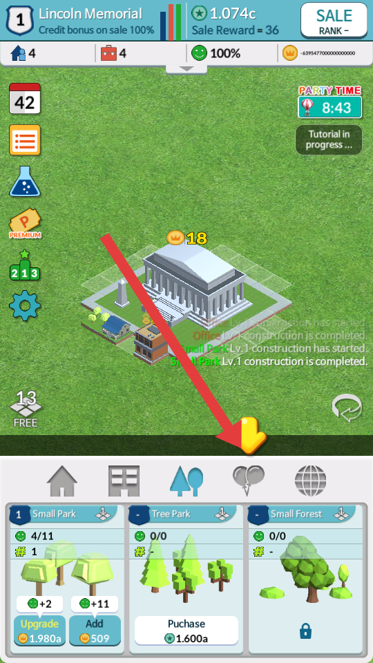 3、解锁公园后,建Small Park,用升级1.980a金币、添加509的金币提升了属性,需要解锁更多的建筑。