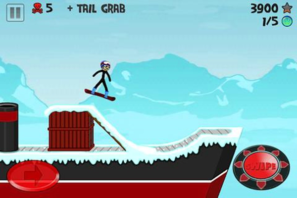 2、快节奏特技动作:主打快节奏的滑雪动作玩法,用户可操控火柴人完成疯狂跳跃、空中特技等多种高难度动作,冲下山坡时的速度感与特技动作的爽快感结合。