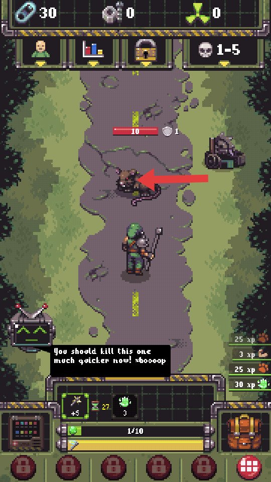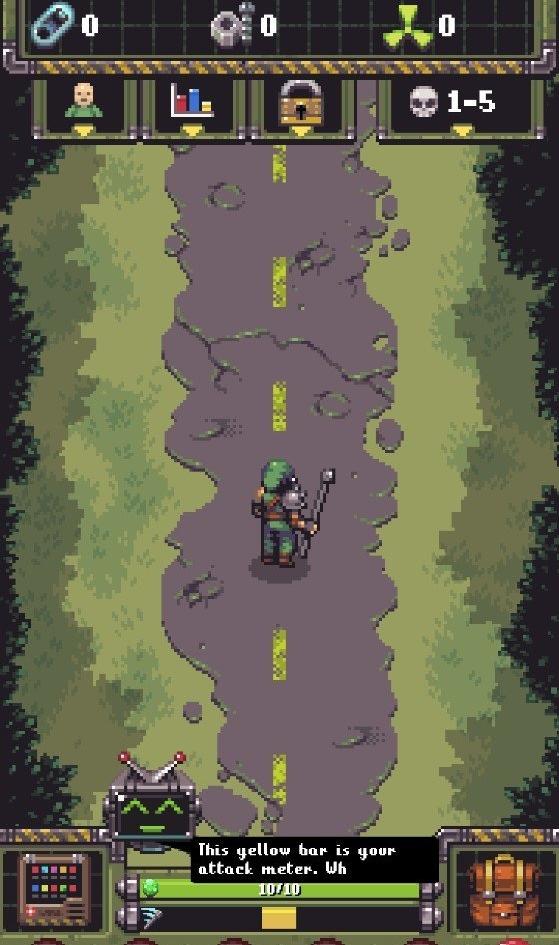 2、英雄与装备升级:通过点击攻击怪物获取战利品与财富,用这些资源提升英雄等级,解锁更强战斗能力;同时收集材料制作抗辐射装甲、新的闲置武器,提升装备等级。