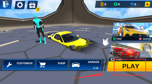 1、在车库界面浏览各类特技车型,根据性能参数与外观偏好选择适合的参赛车辆。