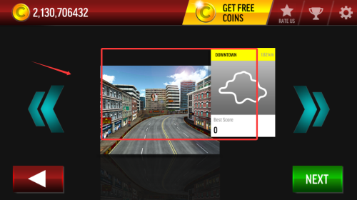 3、场景选择页面呈现10个特色城市赛道,包含昼夜两种时间模式可供切换。