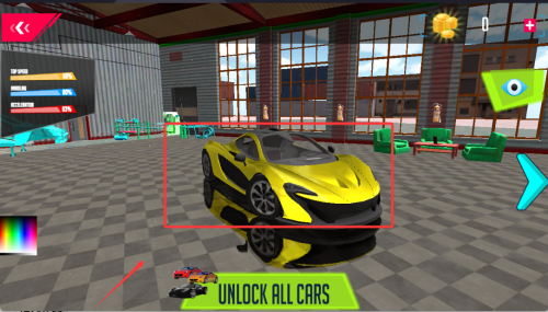 3、车库内浏览20余款特制车型,根据赛道特性挑选适合的越野车或特技车。