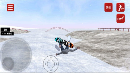 4、通过虚拟摇杆控制滑板移动,结合手势操作完成各类特技动作。