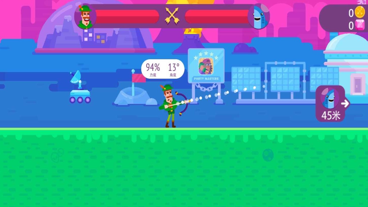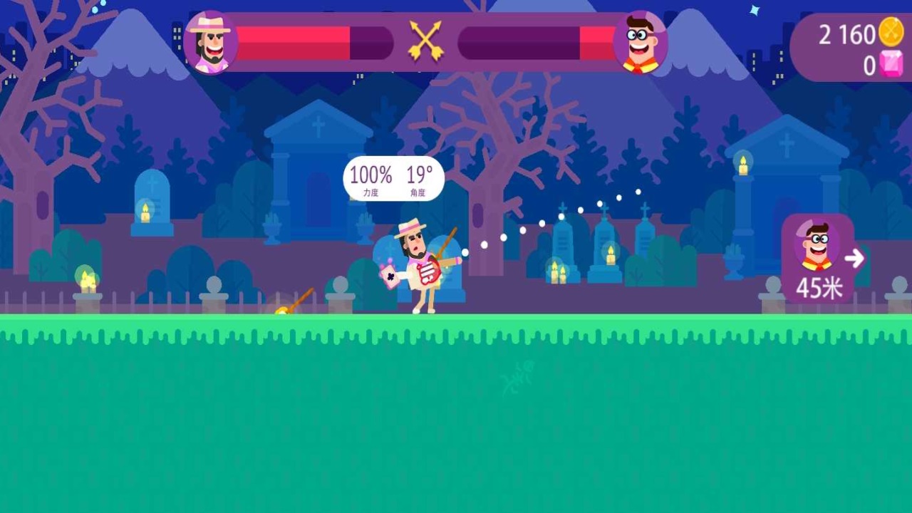 1、打开冷血射手重制版,通过滑动屏幕来控制力度、角度和角色的攻击方向;