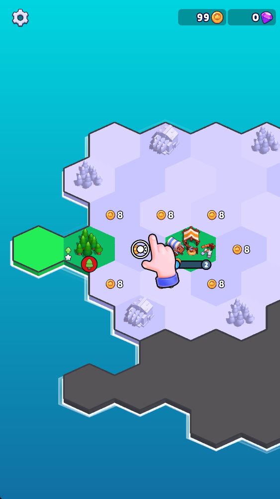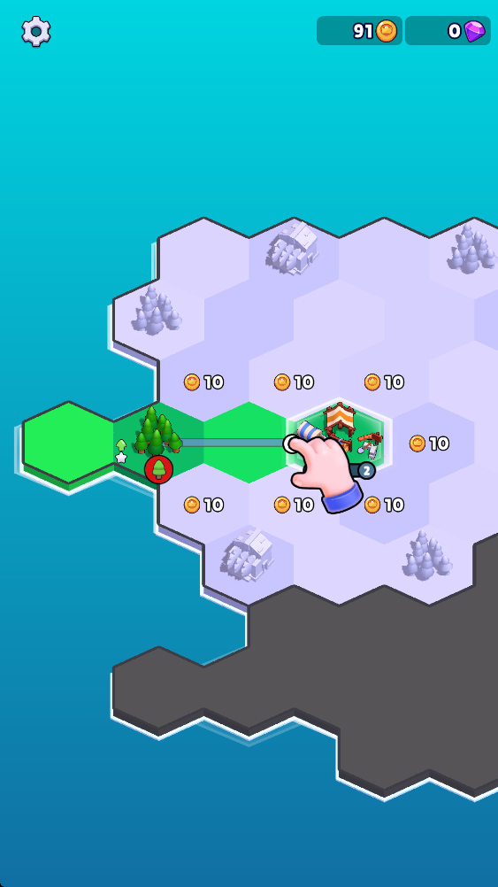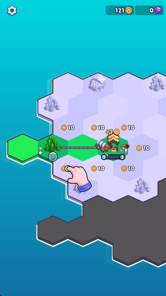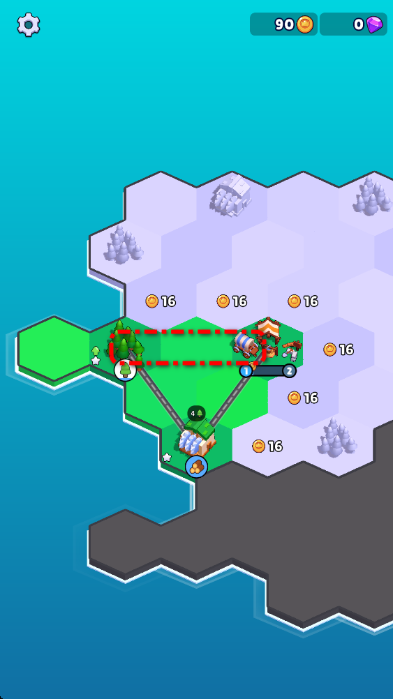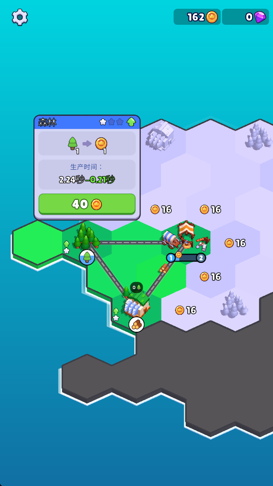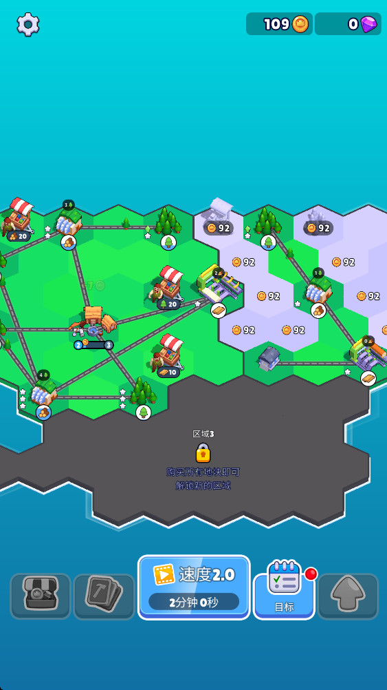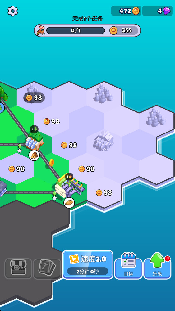 3.道路会持续增长金币数量,再继续用金币开拓其他的土地。