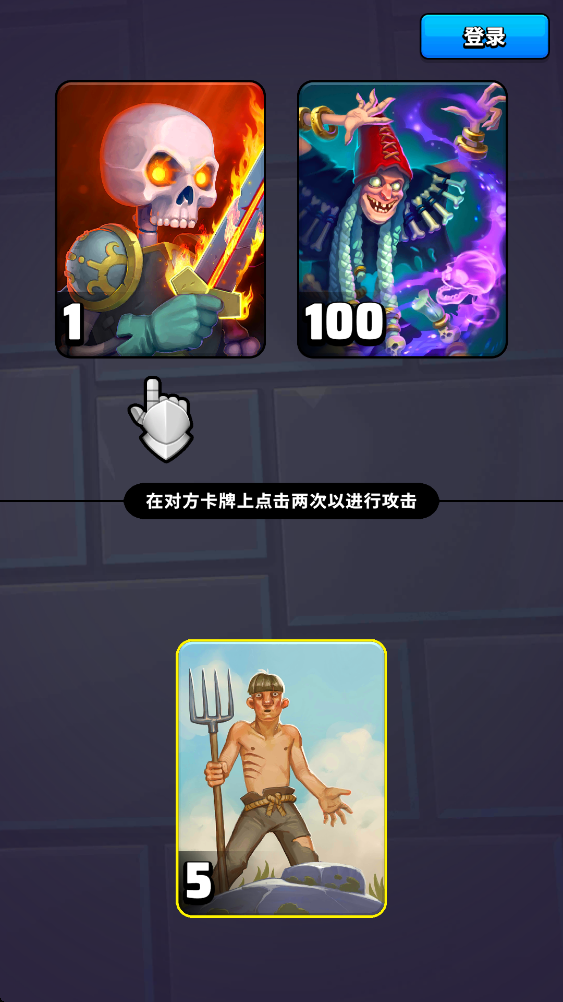 1.根据新手指引,在对方卡牌上点击两次进行攻击。