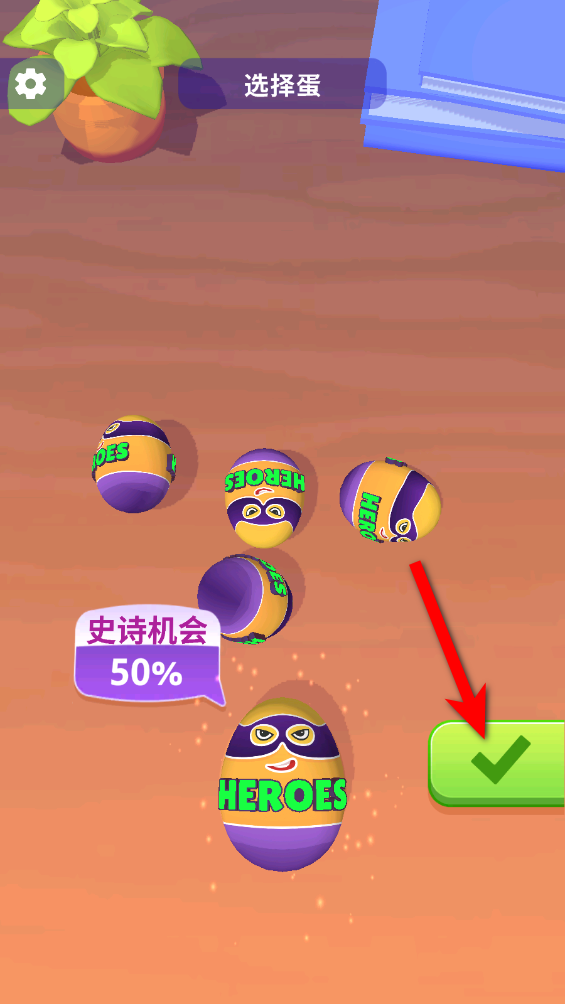 2.每颗蛋出史诗的机会是不一样的,选择完后点击对勾确定。