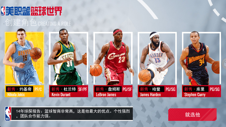 新手创号确定好核心后,会有随机另外4个球员,这个时候先别急着确定阵容,多换一换,会有很多低薪资的优质潜力球员,比如紫卡的火箭史密斯就很不错,我觉得后期上橙卡的机会很大。当然,每个人眼光不同,多换一换就对啦~