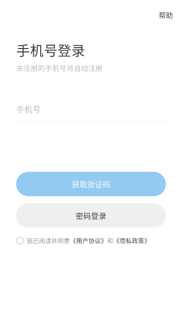 2.输入手机号进行登录,未注册的手机号会自动注册