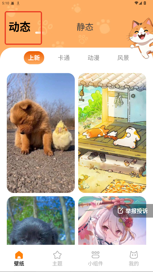 2.通过分类入口选择风景、卡通、动漫等主题。