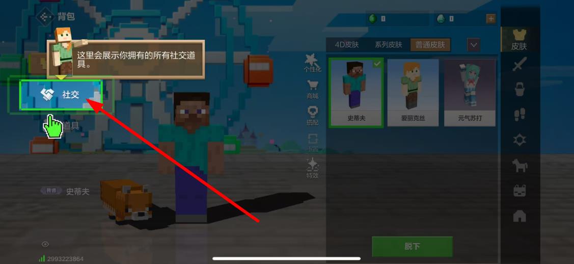 3、确定喜欢该皮肤后,点击皮肤预览下方的【社交】按钮,即可成功更换角色皮肤;若后续想更换回其他皮肤,重复上述步骤选择对应皮肤穿戴就行。