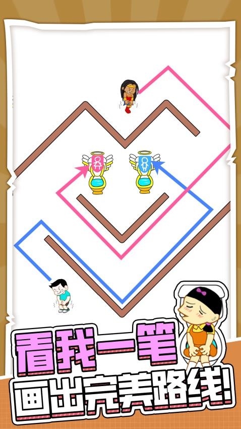 1、开始游戏后先看清楚每个角色的位置和厕所方向,规划一条不交叉的路线,避免他们中途撞在一起。