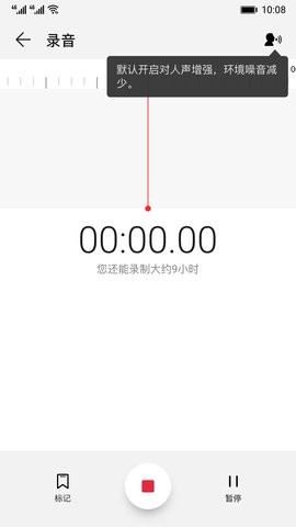 1、华为手机录音机app点击界面中央的红色按钮即可开始录音,支持暂停、继续或停止操作。
