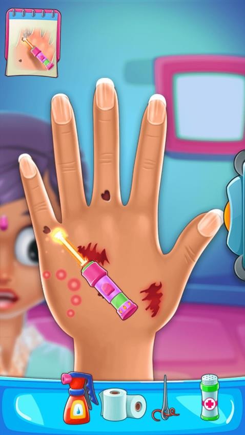 1、操作交互直观易上手,通过点击、拖拽与划动完成各类医疗动作,还原真实手部治疗过程,兼顾流畅性与逻辑合理性。