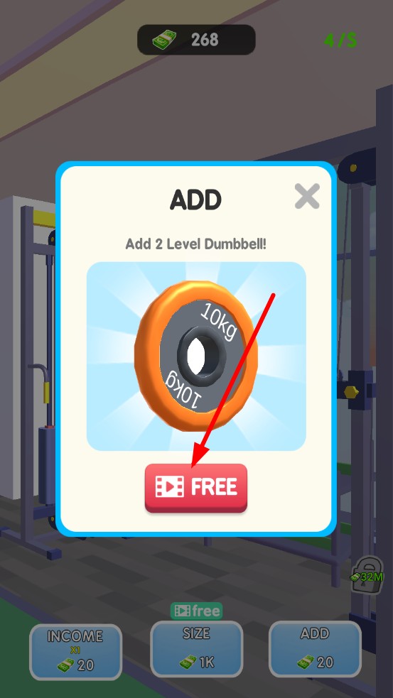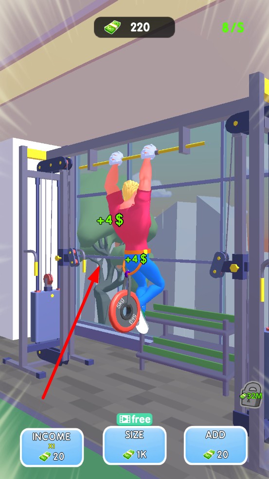 3、,用金币升级引体器材,配重、换防滑杆提升单次收益,解锁哑铃、跑步机等新器械,扩展赚钱渠道。