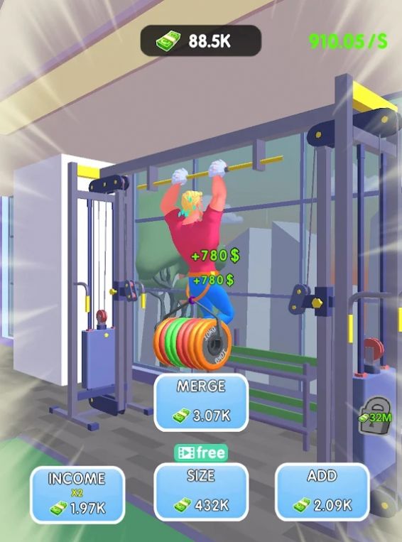 引体向上大亨是一款休闲模拟经营类游戏,玩家化身为健身达人,操控角色在健身房疯狂挑战引体向上,通过锻炼获取金币,升级器材、解锁新健身项目,还能扩建场地、聘请教练,从简陋单杠起步,看着角色肌肉逐步隆起,将小工作室打造成“肌肉圣地”,在卡通3D画风里体验护肝养成与健身成就的双重乐趣。