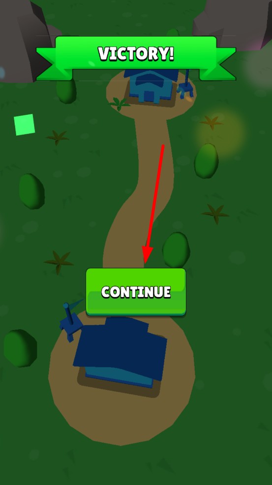 3、歼灭红方前线单位后,指挥剩余兵种持续沿路线推进,合力占领红方核心建筑,达成VICTORY结算后,点击CONTINUE进入下一关。