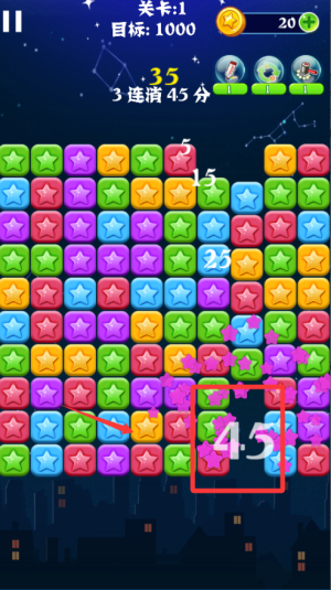 2、优先消除底部或被压住的星星,这样上面的星星会自动下落,容易形成连续消除的连锁反应。