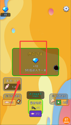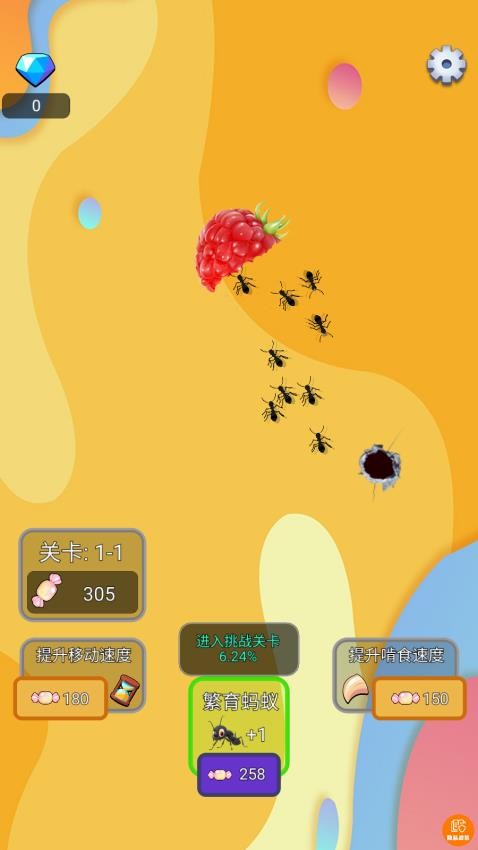 2、通过升级或花费金币增加蚂蚁数量,队伍越大搬运和啃食速度越快,能大幅缩短通关时间。